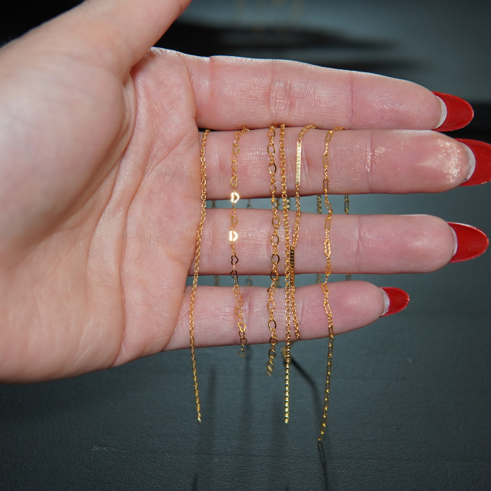 Chaînes en GoldField 14K soudées sur mesure où vous le souhaitez.